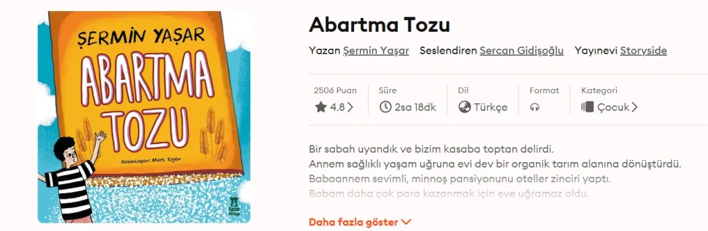 Uzun seyahatlerimizde sık yaptığımız diğer bir şeyde çocuk kitaplarını sesli dinlemek. Elbette bu işin de keyifli tarafı dinlerken kitap ile ilgli yapılan tahminler, yorumlar vs.. Çoğunlukla “storytell” uygulamasını tercih ediyoruz. Özellikle Şermin Yaşar’ın kitaplarına bayılıyoruz. Hatta çocuklardan daha fazla keyif aldığımı bile itiraf etmeliyim. Kimi zaman da “Spotfy” üzerinden çocuk masalları dinliyoruz.