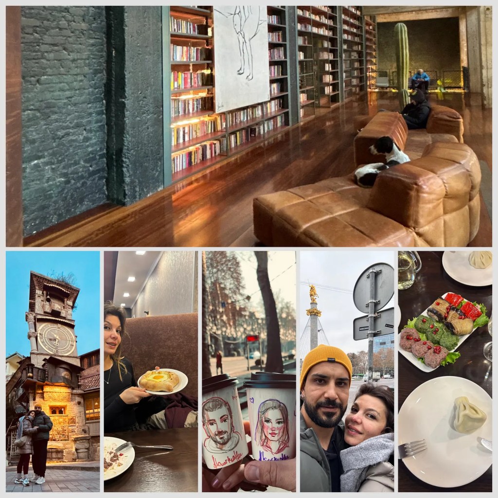 Planladığımız gibi bu şehri de günlük ortalama 30–35.000 adım atarak yürüyerek gezdik. Yürüdükçe yedik içtik ve yürümeye devam ettik. mutfağı için söylenecek çok şey var ama naçizane benim söyleyeceğim üç–beş şey var zaten. Bizim favori ikilimiz Haçapuri ve enfes Gürcü şarapları oldu. En keyifle yemek yediğimiz mekan ise “Khinkali” restoran oldu. Çeşit çeşit Gürcü biraları ve şaraplarını denedik. Bir kaç çeşit Haçapuri denedik ancak favorimiz şu üzerine yumurta kırdıkları “Adjarian Haçapuri’ydi”. Her ne kadar kahvesinden ziyade kahve bardağına çizdiği müşteri portreleri daha başarılı olsa da bizim için “Kvarts Coffe’de” bu şekilde bir kahve içmek güzel bir deneyimdi.